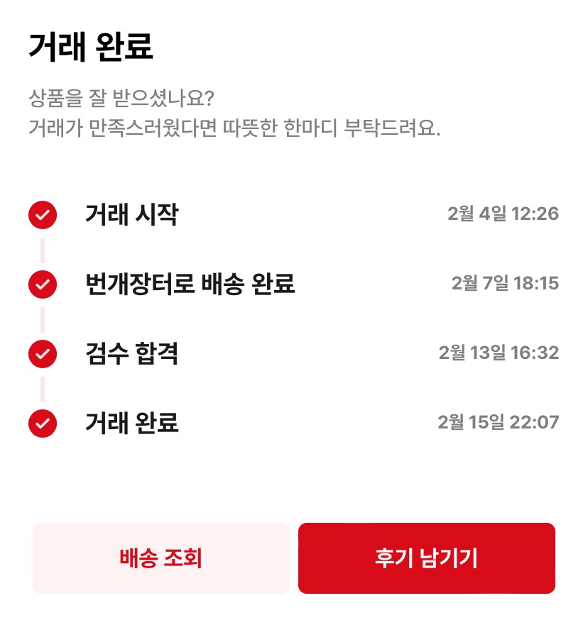 3. 번개장터에서 정품 검수를 합니다. (저의 경우에는 설 연휴가 껴서 7~13일 5일 넘게 걸렸는데 보통은 물건 도착하면 바로 검수 시작할 듯 합니다! 저도 설연휴 끝나자마자 바로 검수 진행으로 바뀌었습니다.)